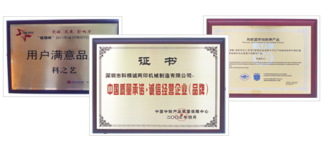 獲中國(guó)絲網(wǎng)印刷行業(yè)協(xié)會(huì),國(guó)際印刷機(jī)械質(zhì)量監(jiān)督檢驗(yàn)中心 “產(chǎn)品質(zhì)量信得過(guò)企業(yè)”